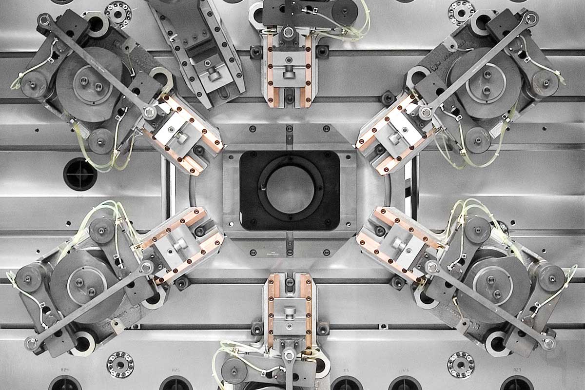 - Viel Freiraum auf Arbeitsplatte für zusätzliche Bearbeitungsprozesse (Kontaktschweißen, Gewindeformen, Fügen von Schrauben etc.)