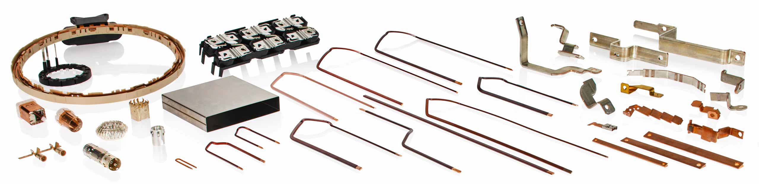 Con ellas, nuestros clientes fabrican hairpins de forma altamente productiva en un gran número de variantes y busbars con un ahorro de material de hasta el 50%. Las soluciones de automatización de Bihler también convencen en la producción de conectores de células y módulos de baterías completamente montados en bastidores portadores, conexiones ZSB en motores híbridos, casquillos blindados y conectores HV completos.